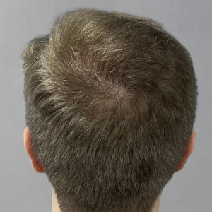 Treatment performed to restore density in the crown area, ensuring a uniform, natural result in harmony with the existing hair.